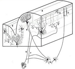 • efferent: deep cortical nuclei